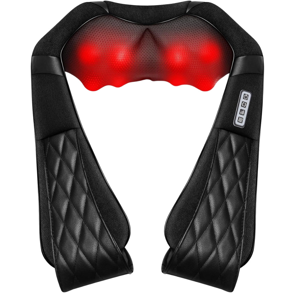 Masajeador multifuncional para el cuerpo: el masajeador shiatsu para cuello tiene 3 velocidades ajustables, puedes obtener la presión adecuada para aliviar los dolores musculares. El masajeador con calor para hombros y cuello es adecuado para la temperatura del cuerpo humano, cuenta con temperatura de calentamiento infrarrojo para aliviar la tensión muscular y mejorar la circulación sanguínea. El masajeador de hombros se apaga automáticamente en 15 minutos, no te preocupes por el uso excesivo.