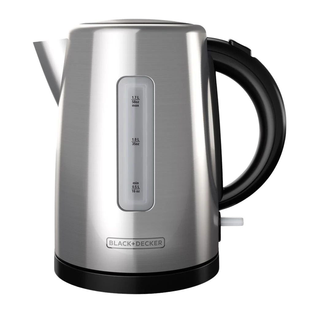 Hierva agua en solo minutos con el Hervidor Inalámbrico de Acero Inoxidable de 1.7L de BLACK+DECKER. Destacandose la base giratoria de 360 grados que para conveniencia permite alzar el hervidor de la base desde cualquier ángulo para un llenado y vertido inalámbrico fácil. Dobles ventanas de agua con marcas de niveles permiten llenar cualquier cantidad con rápidez y facilidad.