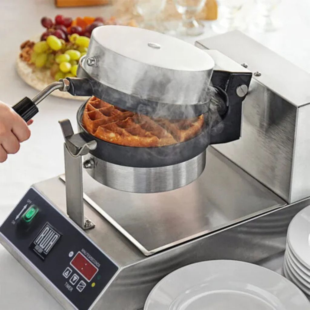 La Waflera RWA es ideal para colocarse sobre mostradores o mesas de trabajo en cualquier negocio ya que cuenta con un tamaño compacto, perfecta también para cocinas con espacios reducidos. Haga Wafles belgas en esta Waflera RWA, la cual tiene placa aluminio que calienta por ambos lados para una cocción uniforme y está recubierta con teflón para que no se peguen los wafles, esta se puede girar a 180º para una mejor distribución de la mezcla.