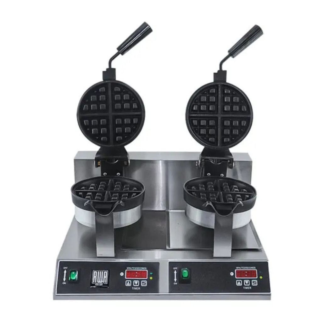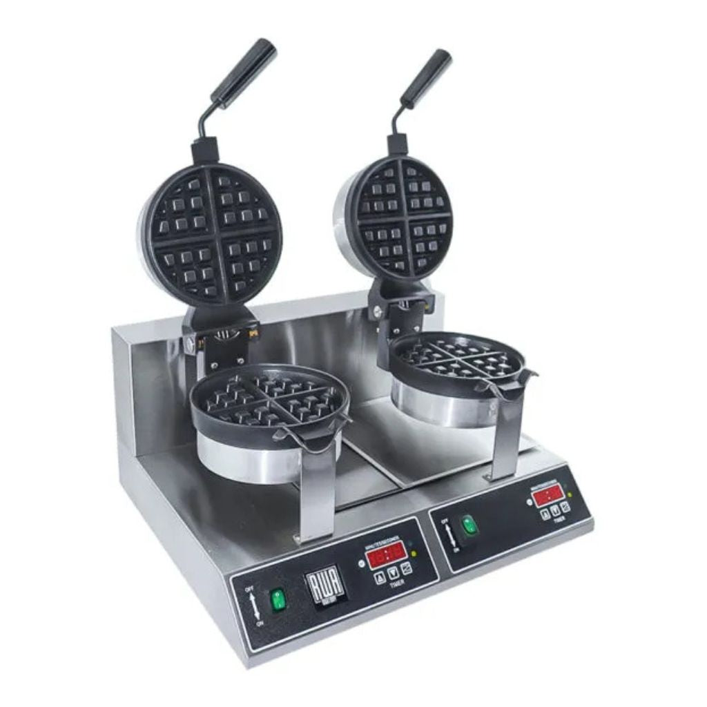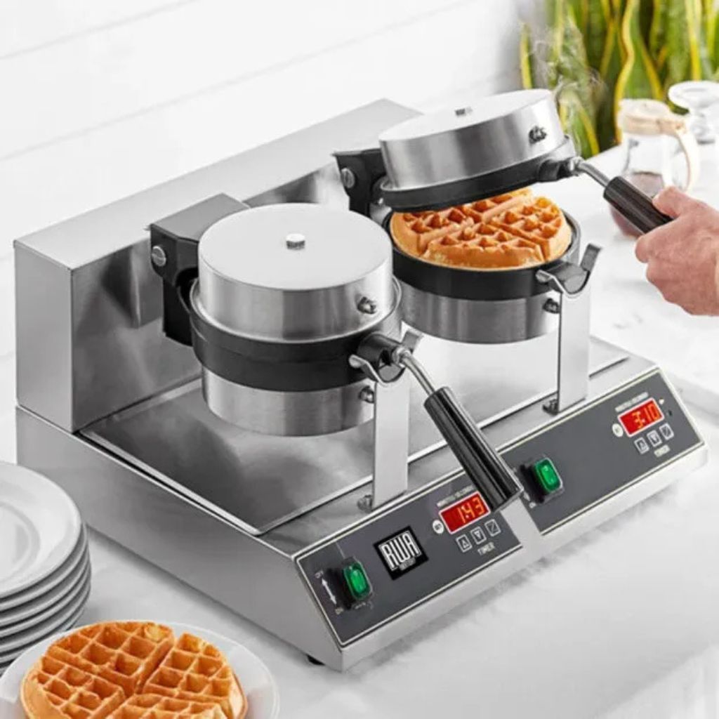 Prepare deliciosos wafles con la Waflera Doble RWA, este equipo de calidad profesional que le permite hacer este delicioso platillo con mucha facilidad, amplie el menú de su negocio con la máquina Waflera Doble RWA para deleitar a los clientes de su negocio y realice variedad de desayunos, cenas o meriendas con la confianza saber que obtendrá de manera mucho más rápida y con un resultado muy bueno, wafles de calidad.