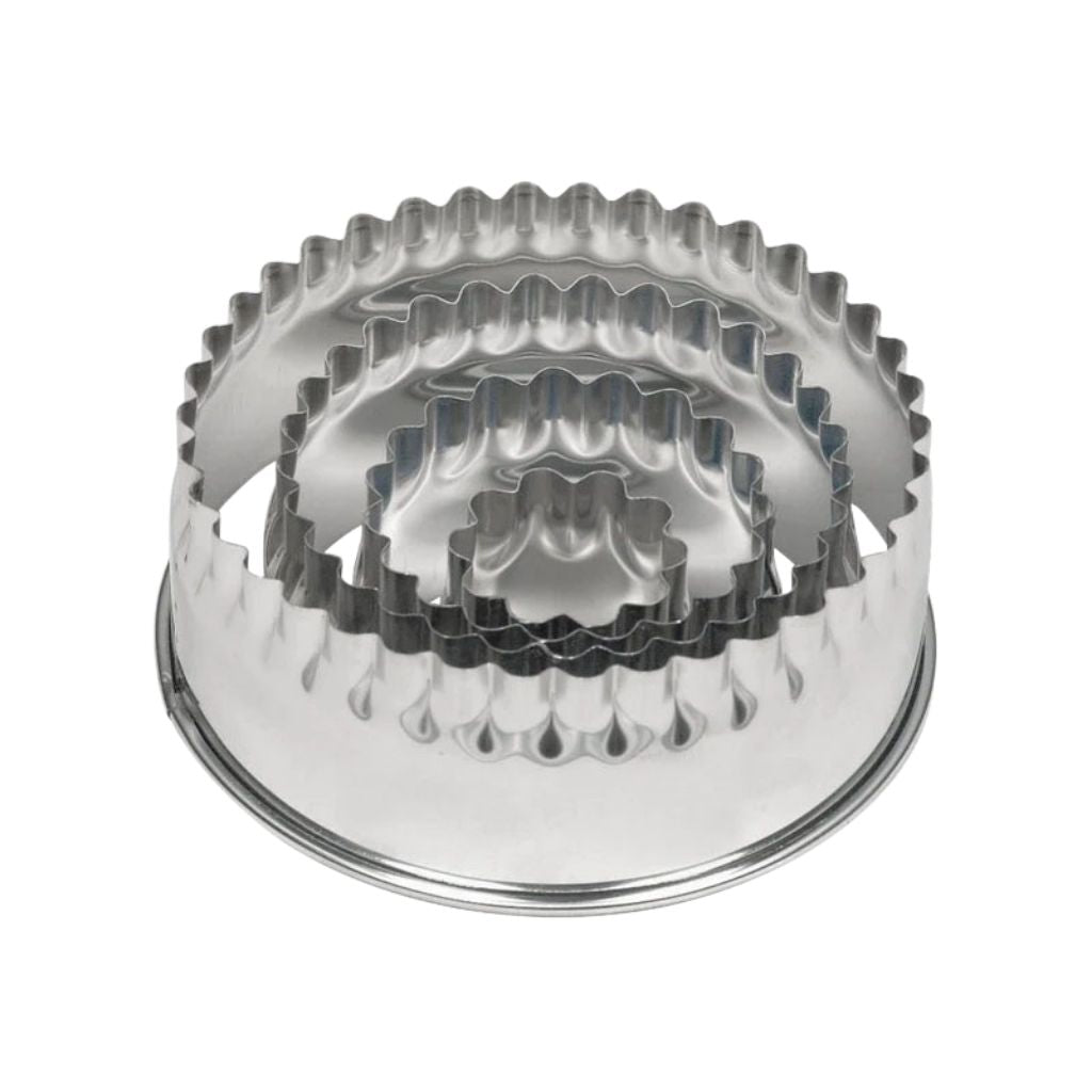 Material de construcción: Acero inoxidable.Color: Plata.Dimensiones del paquete: 2 cm de altura x 13 cm de diámetro.Cantidad: 4 piezas.Forma con relieve.-Categoría: Utensi. Panad-Pastel.