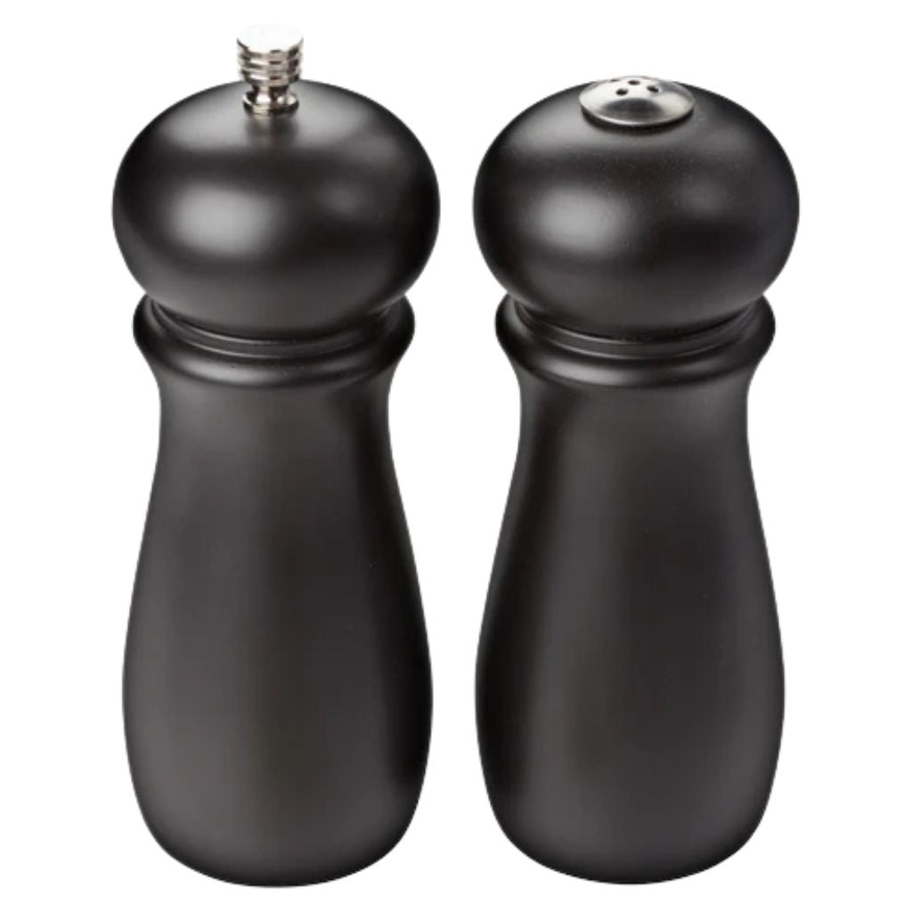 Diseñado con un hermoso acabado mate negro, este elegante salero y molinillo de pimienta se verá hermoso en una variedad de instalaciones de servicio de comidas.