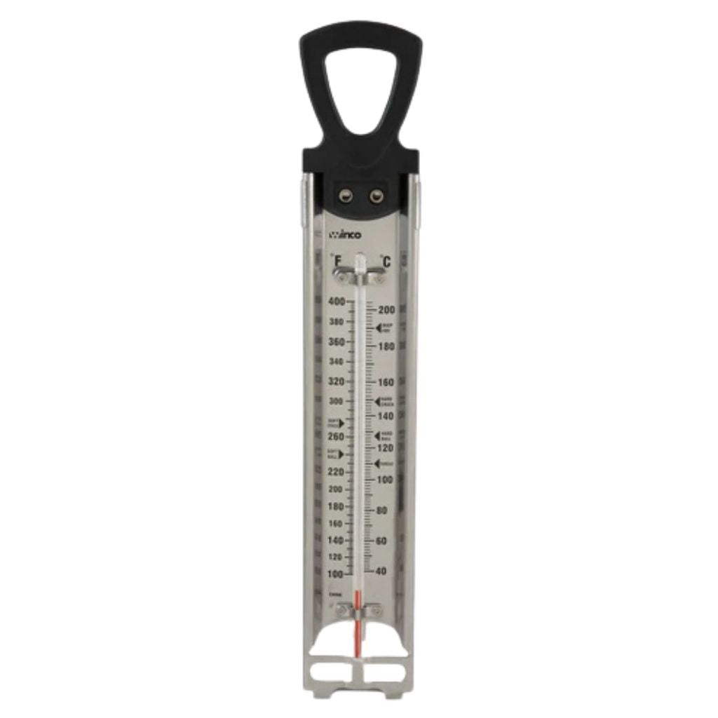 Un elemento básico para los fabricantes de dulces profesionales, el termómetro tipo paleta para freír dulces de 11 pulgmide la temperatura requerida para caramelizar el azúcar y el aceite de calefacción.
